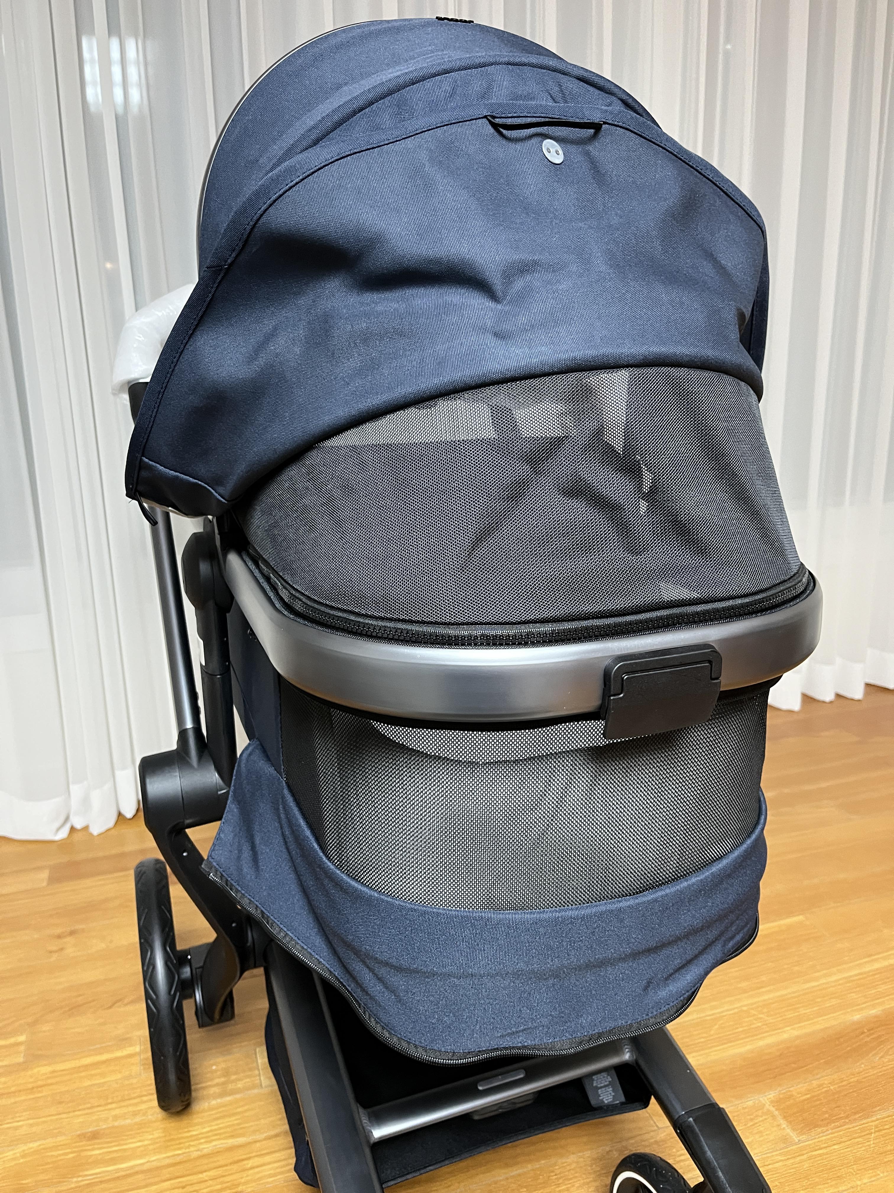 그 외에도 차를 타고 이동할 때 폴딩을 하더라도 부피가 크기 때문에 트렁크 공간을 많이 차지합니다. 하지만 베시넷(콧)을 사용하게 되는 신생아의 경우 가장 안정적으로 태울 수 있다는 특징을 가지고 있습니다. 만약 차량이동이 필요하지않은 동네산책이나 병원, 백화점 등이 가까운 거리에 있다면 아기가 어린나이에도 태우고 다니기에는 가장 적합한 모델입니다.